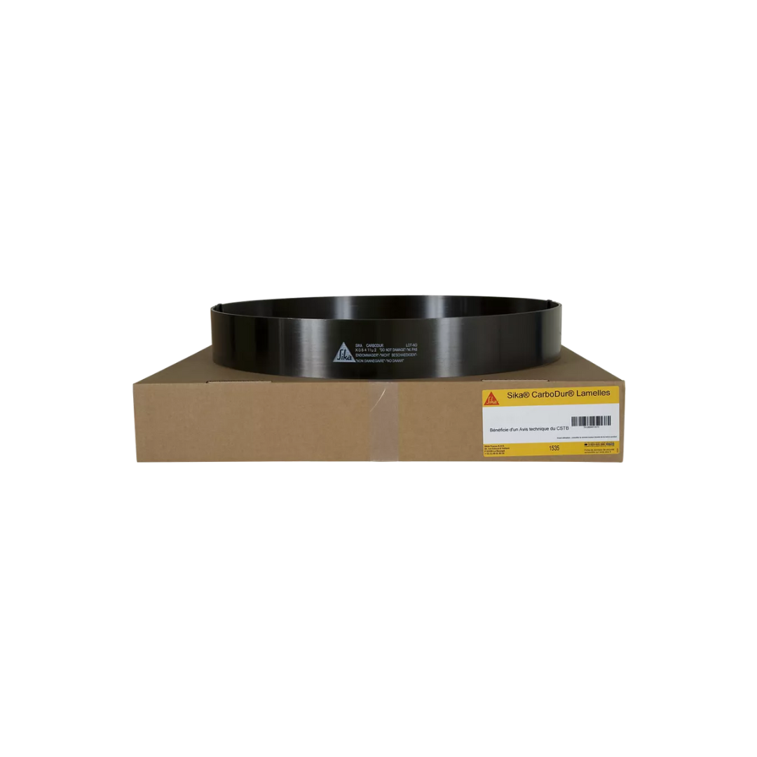 Les Sika® CarboDur® S sont des P.R.F.C. pultrudés (Polymères Renforcés de Fibres de Carbone), à base de fibres de carbone noyées dans une matrice époxydique. Conçus pour le renforcement des structures en béton armé, en béton précontraint, en bois, en maçonnerie, en métal.