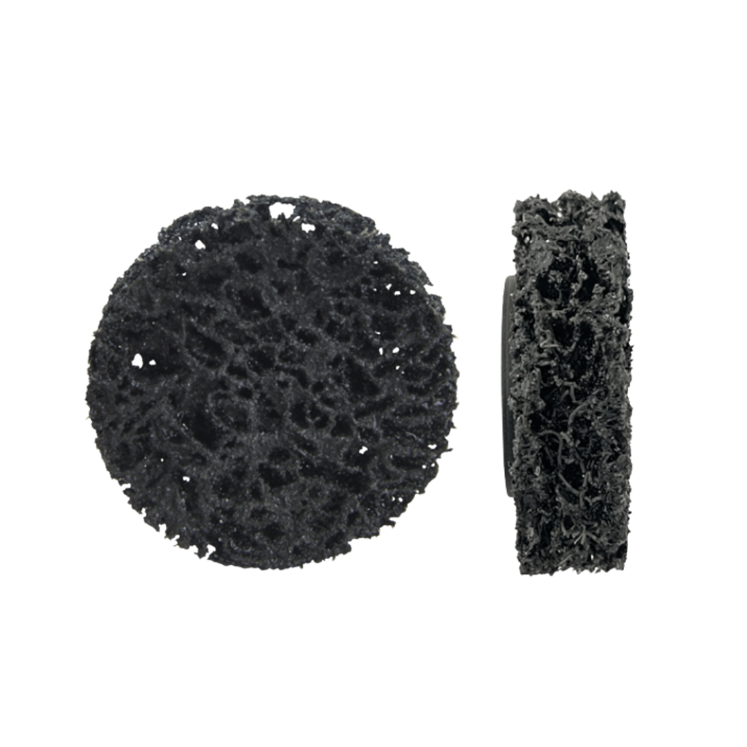 Non-tissé grossier de nettoyage, garni de grains de ponçage. Pour dérouiller, enlever la peinture, matifier et décalaminer des surfaces métalliques. Pour la préparation de travaux de soudage. Effet purement superficiel. Ø 50 mm. 6 pièces